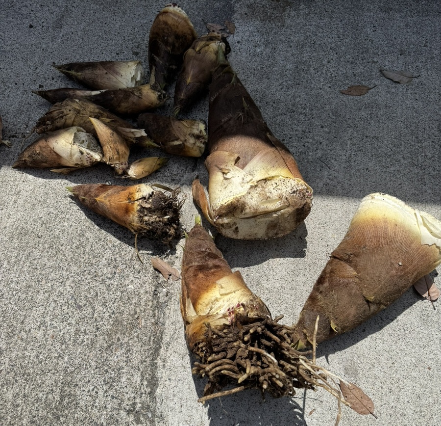 親の実家で山を所有しており、そちらでたけのこが取れるため毎年たけのこ狩りは行っております。たけのこ狩りのシーズンとしては3月中旬から〜5月上旬ごろまでとなっておりますが、たけのこの成長速度は速く1日で数十cmから最大1m以上も伸びることもあり、たけのこ狩りに行くタイミングによっては全く取れないこともあります。実際去年はタイミングが悪かったため全くとることが出来ませんでした。今年はタイミングが良かったため多くのたけのこがとれました。